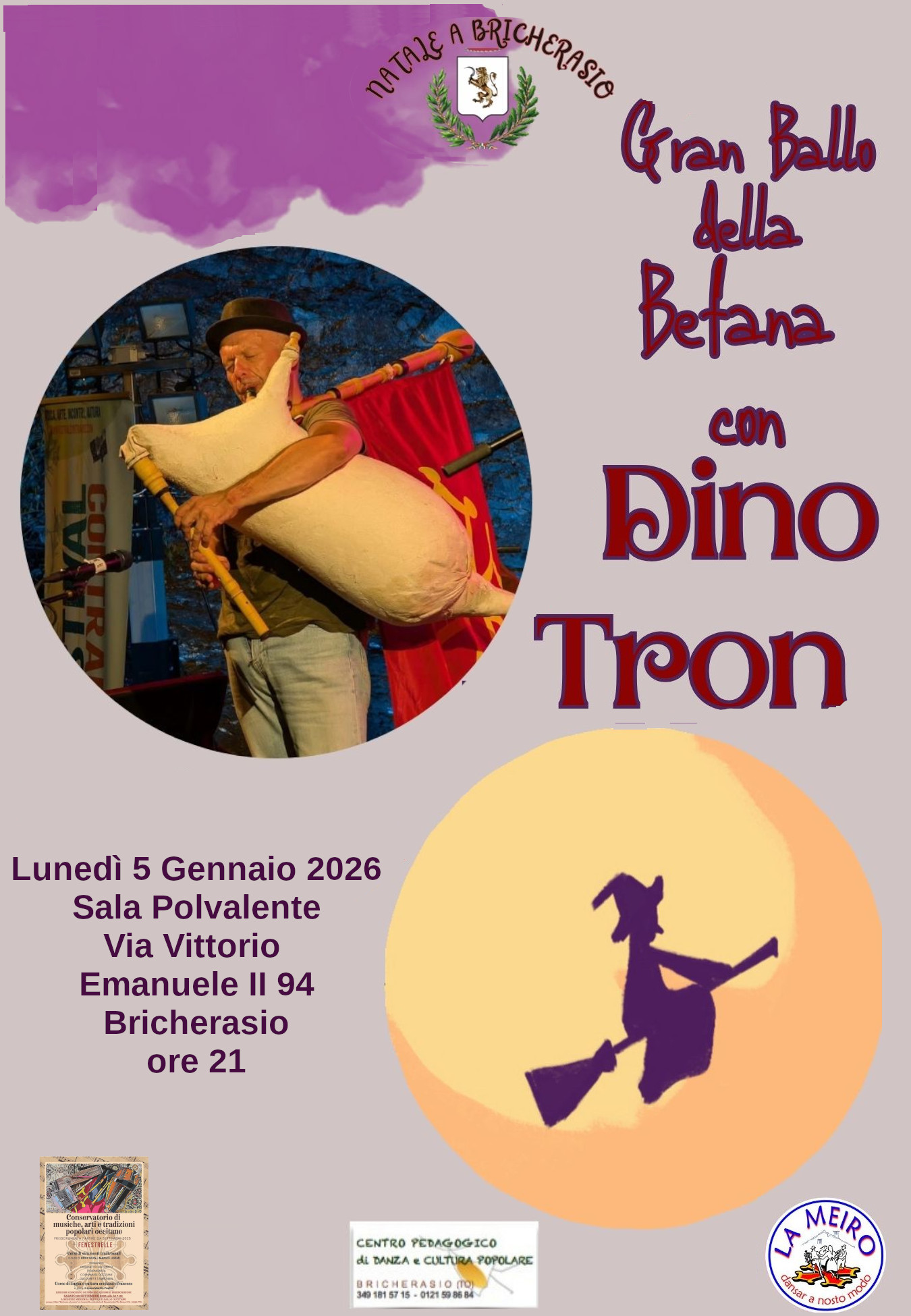 Lunedì 5 Gennaio alle ore 21 presso la sala Polivalente in via Vittorio Emanuele II 94 a Bricherasio Gran Ballo della Befana con Dino Tron |