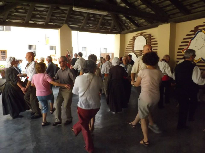 I nostri ballerini avevano eseguito varie danze tra le quali la curenta della Val Chisone, sulla melodia “del Cucù”; a fine esibizione conosciamo una coppia di Angrogna, che ci racconta che loro quella curenta la ballano in modo diverso e ci fanno vedere come.